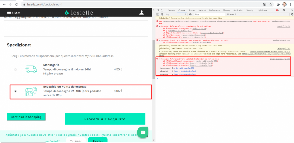 Hi, I have installed a module that displays a map when selecting a shipping method to show a map and select a pickup place. The module seems to work with PS 1.6, but in TB there are errors that stop the module from loading the map. This is what the module support tells me (I will translate): Could be an outdated jQuery library This is the screenshot of the error It seems there are 2 posible solutions Once is to review if in the file classes/controllers/AdminController.php there is a call to Query ($this->addJquery();) and if in the file controller.php there is the function: public function addJquery($version = null, $folder = null, $minifier = true) { $this->addJS(Media::getJqueryPath($version, $folder, $minifier)); } The other would be to update the content of the directories Admin y js. The best solution is to contact TB developpers. (Translation finished) Any ideas? @toplakd could be because of the 3 steps modifications? Regards