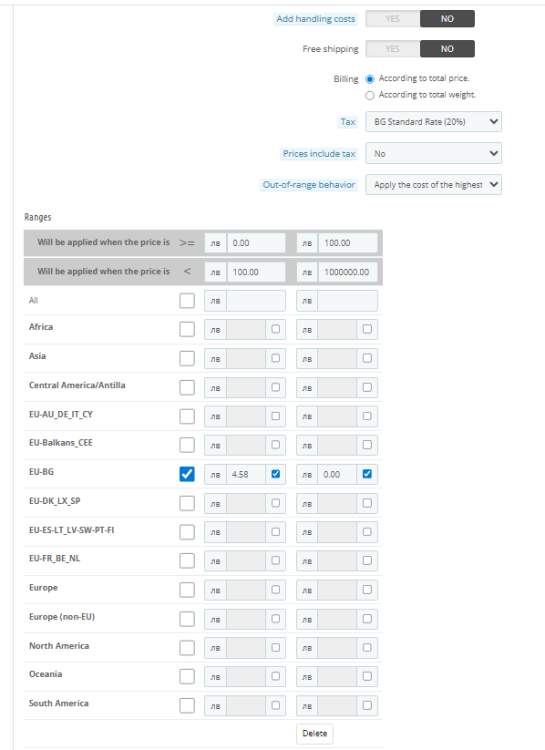 You're misusing the settings. You should have only one carrier for every single carrier you work with and assign free shipping according to weight/price in it as follows: In my case - I offer free shipping over 100 BGN, as you can see you have to add second range (upwards of 100 BGN) and assign 0.00 as cost. Then in FO in BGN (ignore the double currency, this is a local requirement currently as we are addopting the Euro from Januar 1st): And in Euro: In general don't make 'paid' courier up to your free delivery and then second courier for free deliveries for over XXX. This will skew your statistics for courier usage later on.