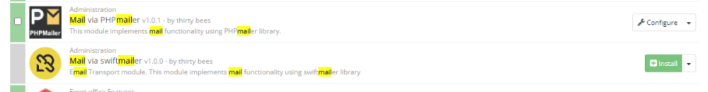 1. Install one of the modules (not both as you can't use them simultaneously) and configure it: 2. Go to Advanced Parameters -> Email and choose the module you installed. (here I have another useful module installed so don't get confused, if you use it you have to run both one of the transport modules and the Queue module): 3. Send test email. If the mail don't arrive your module configuration is not OK. -
