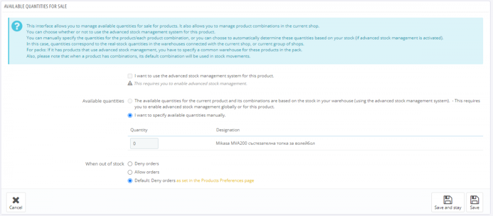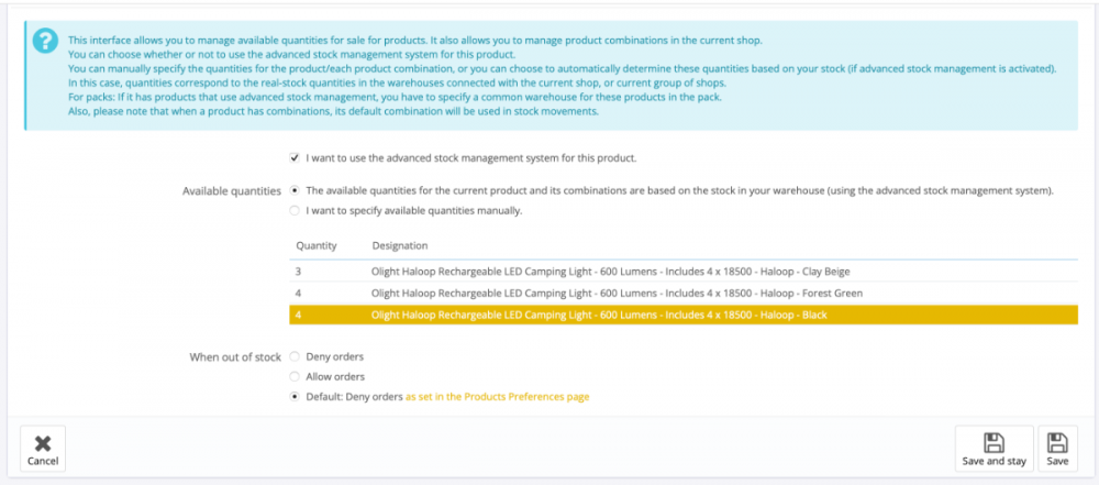 I'm not sure exactly what condition in each status makes takes or adds quantity but in order to 'reactivate' an order please try the following sequence: Customer orders -> Order is on Preparation in process (quantity is substracted) -> You cancel the order for whatever reason with Canceled (Order is added to available quantity) -> you want to renew the order, puting it back on Preparation in Process (quantity is subtracted again) -> you assign bank payment, Waiting for bank payment (no quantity changes, email for bank payment is sent out) -> you continue as you wish (Completed or Canceled) In general I believe some of them are internal statuses that even don't send email to the customer, in this case Waiting for bank payment is not intended to subtract stock. But I don't know what checkmark makes the subtraction (probably Consider the associated order as validated.) -