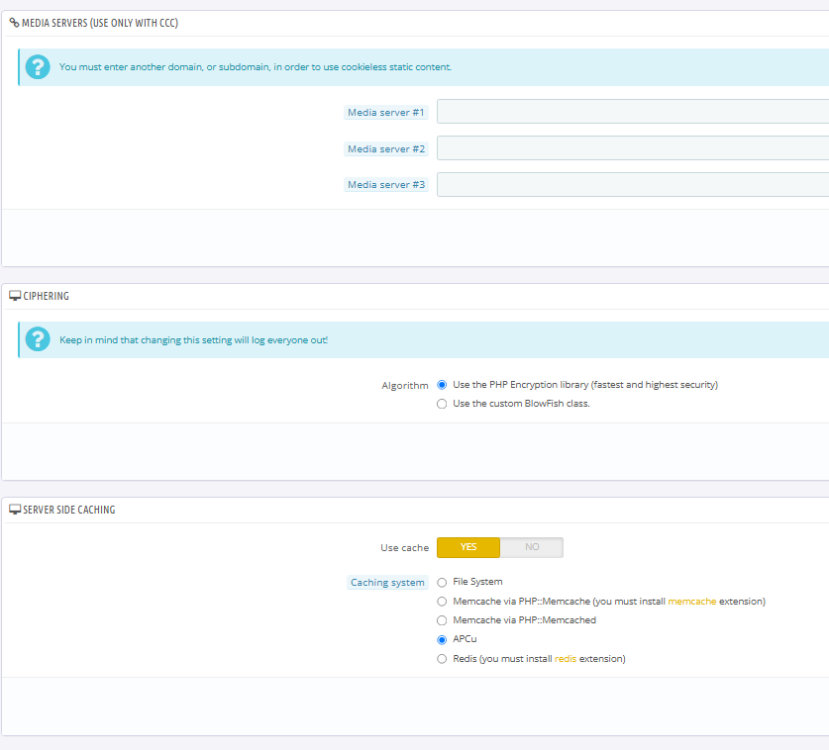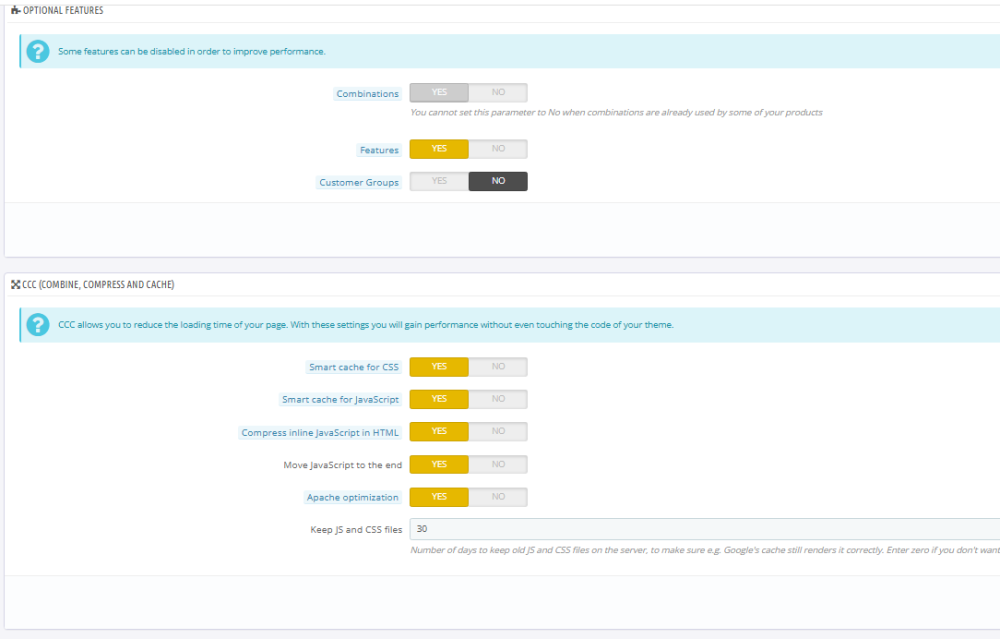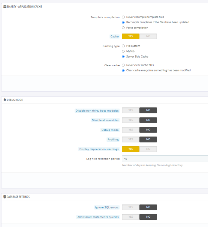 DON'T use Full page cache as it is 'broken'. Use the following settings for caching and no hassle: You say the large amount of files are in your cache folder, you mean root/cache or root/themes/cache? If it is in your theme cache folder you can manually go in and delete everything that is older than 2 months. If you are not using thirty bees 1.6 or later the system did not clear those files automatically. As you can see in my instance there are two new settings for logs and js and css files retention. When you set those up thirty bees will delete files older than this period. -