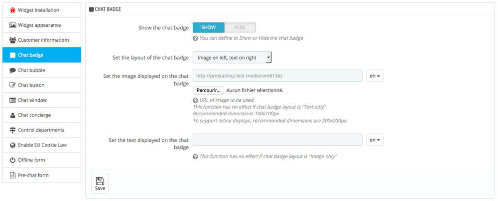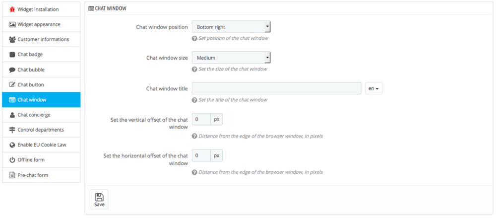 Hi, This installation module of the livechat script proposed by Zendesk will allow you to control the display of the chat window as you wish on your shop. Complete customization independent of the configuration made in the Zendesk Chat dashboard. Of course the module is multi-language and multi-shop compatible. Download on PrestaToolbox Download on PrestaToolbox