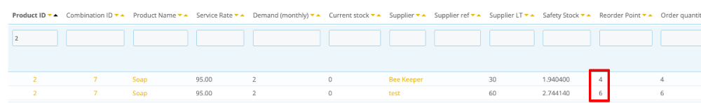 This functionality is based on Products to Order overview. That table shows list of all supplier products and calculates safety stock/reorder point for each supplier. To calculate this, it takes into account your sales history, supplier lead time, stock keeping costs, and some other factors. You can check that table to figure out when you should order product from that particular supplier. For every supplier, the reorder point for that product can be different: Now, the Auto generate button is very simple. It looks into this table, but only for suppliers that are set as product default supplier. It current stock is below reorder point, the empty/blank/draft purchase order for that supplier is created. No product is added. It just exists so the back office employees knows what to check. It's not perfect, and it's not for everyone, but it can help keep an eye on things. No, the module currently does not do that. It's a good suggestion, I've added this enhancement request to the backlog. We already have a similar ER to warn when the product is in another PO (draft or sent). -