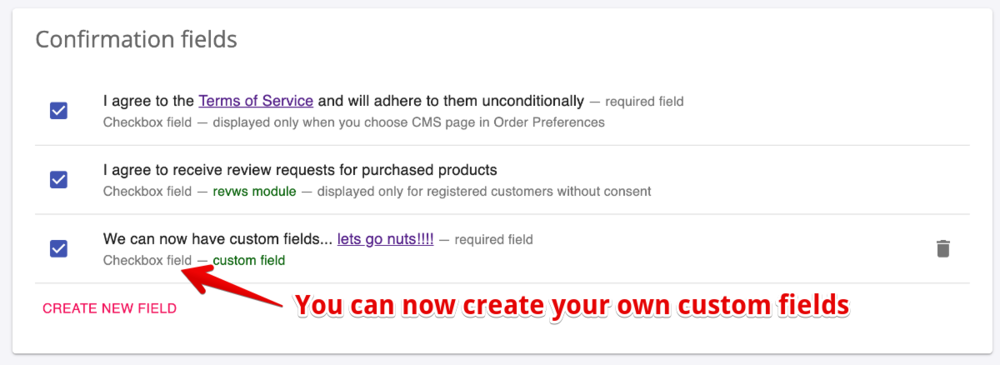 13. I also think that it's not really necessary to have separate checkbox for GDPR (in checkout). I have even wrote an email to the bureau that oversees GDPR implementation in my country, and they confirmed this. Data provided during checkout are considered either - required by law -- business entities are required to collect some personal data for tax and accounting purposes. These are the data displayed on invoice - name, address, etc - legitimate interest -- businesses have legitimate interest to collect additional personal data, such as email or telephone number. These are to protect against fraud, to ensure product deliverability, etc... for example, you need phone or email to contact your customer if you discover later that you are unable to fulfil the order. As long as all the personal information you are collecting during checkout can be in one of these two categories, you don't need any consent. You just need to inform your customer about it, for example in your terms or privacy page. Of course, if you collect some PI that doesn't match these brackets, then you need consent. Example is age / date of birth. Unless you are selling alcohol or tabacco, you don't have any legitimate of legal interest to collect this info - you need consent. Anyway, I'm not here to discuss about GDPR. And I don't want to force my ideas on anyone. I decided to add new feature to the module -- custom consent checkboxes. You will be able to create as many checkboxes from back office as you want. That should fix it