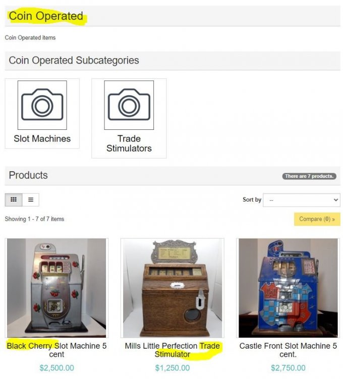 6. Hi, I appreciate your guys help, but when I went to Associations for the Black Cherry, the CoinOp category was not checked. (Capture1) Then I went to the coinop page, and the Black Cherry was showing along with a trade stimulator on the CoinOp category, when I want it to only show in the sub category, not the main category of CoinOp. So basically the Black Cherry is showing on Coin Op, and Slot machines. I only want it to show on Slot Machines. Thanks for your time and help, pb4sc
