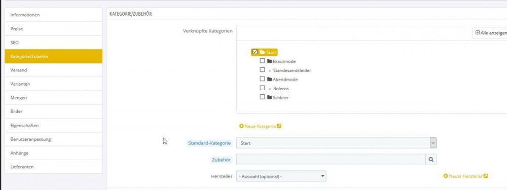The following are my next findings: 1. i checked the database and found out that the following tables are responsible for the categories: tb_category tb_category_group tb_category_lang tb_category_product tb_category_shop 2. in the table tb_category_lang I have identified the strings for all categories. In it I can see the created test categories. 3. enable profiling for debug purposes and disable cache + CCC. 4. when trying to create a new category, profile interaction with category tables is detectable 5. when trying to create a new product, interaction with category tables is NOT available --> What? How does the form know which categories to display for selection?
