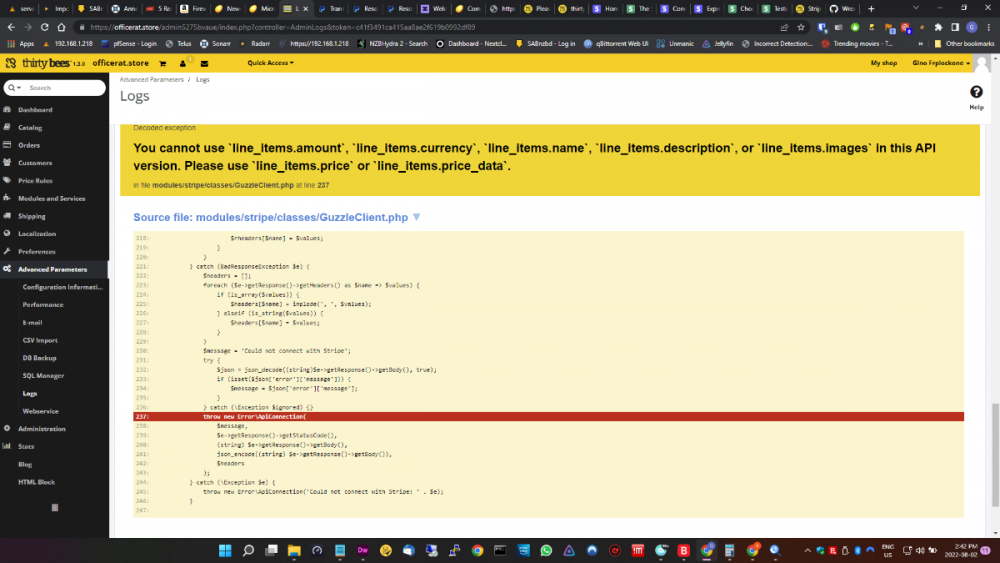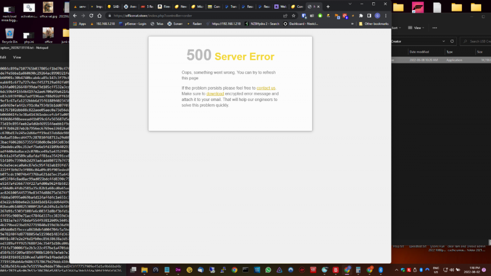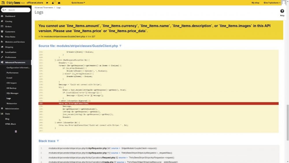 My first customer ever received a 500 server error when attempting to place an order and now that paypal has charged him for the item and he never received it there is an open dispute. Please help me fix this 500 server error when placing an order as soon as I try to complete the checkout here is the encrypted error message. What can I do to remedy the situation? decrypted error message: $rheaders[$name] = $values; 219: } 220: } 221: } catch (BadResponseException $e) { 222: $headers = []; 223: foreach ($e->getResponse()->getHeaders() as $name => $values) { 224: if (is_array($values)) { 225: $headers[$name] = implode(', ', $values); 226: } elseif (is_string($values)) { 227: $headers[$name] = $values; 228: } 229: } 230: $message = 'Could not connect with Stripe'; 231: try { 232: $json = json_decode((string)$e->getResponse()->getBody(), true); 233: if (isset($json['error']['message'])) { 234: $message = $json['error']['message']; 235: } 236: } catch (\Exception $ignored) {} 237: throw new Error\ApiConnection( 238: $message, 239: $e->getResponse()->getStatusCode(), 240: (string) $e->getResponse()->getBody(), 241: json_encode((string) $e->getResponse()->getBody()), 242: $headers 243: ); 244: } catch (\Exception $e) { 245: throw new Error\ApiConnection('Could not connect with Stripe: ' . $e); 246: } I also tested the system and I received the same error message and am unable to place any orders. Im losing money, already lost $200 in payments not processing exception_202282131510.txt