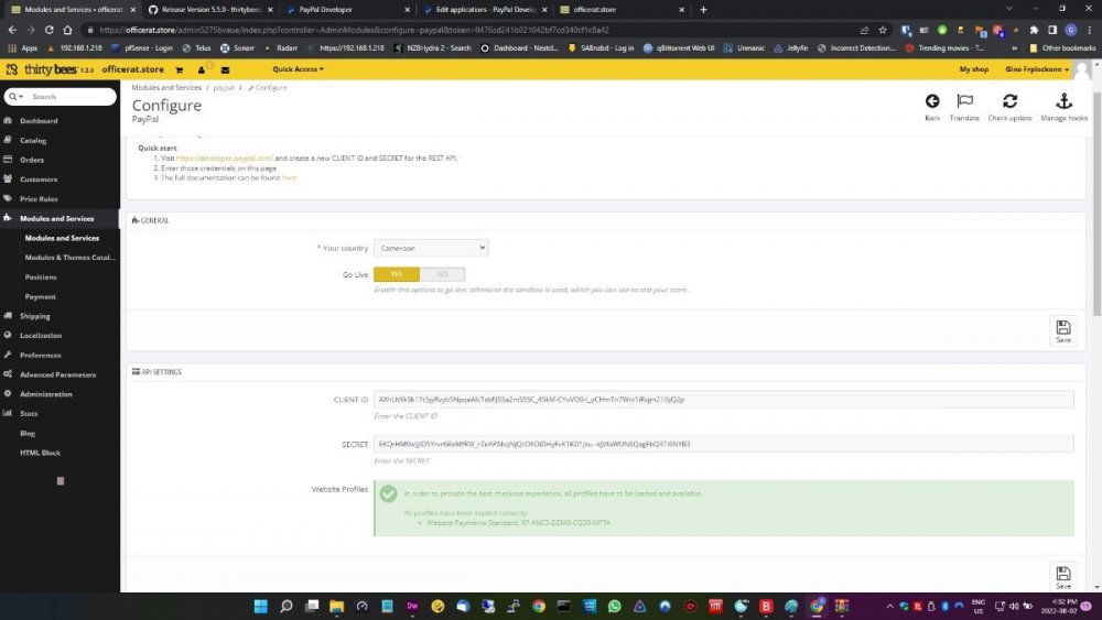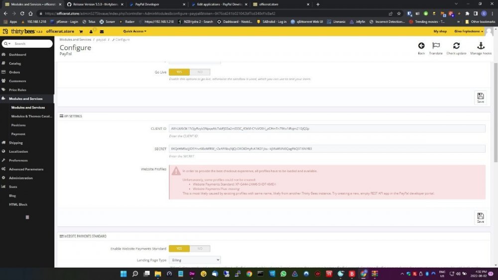 I cannot test paypal because it won't allow the same account as who's charging the money to pay the money. I get a warning that I am the seller account and I cannot order through paypal with the same account. That is the entire error message, I am trying to get stripe working or anything working at this point any payment method is better than none. and yes there was a dispute for paypal it charged him then it said 500 server error and the order did not even register in thirtybees but the customer was charged for the item. In fact, I first heard about the dispute through paypal by email and I had no knowledge of the order at all until I emailed the customer who has since moved on and bought it somewhere else.