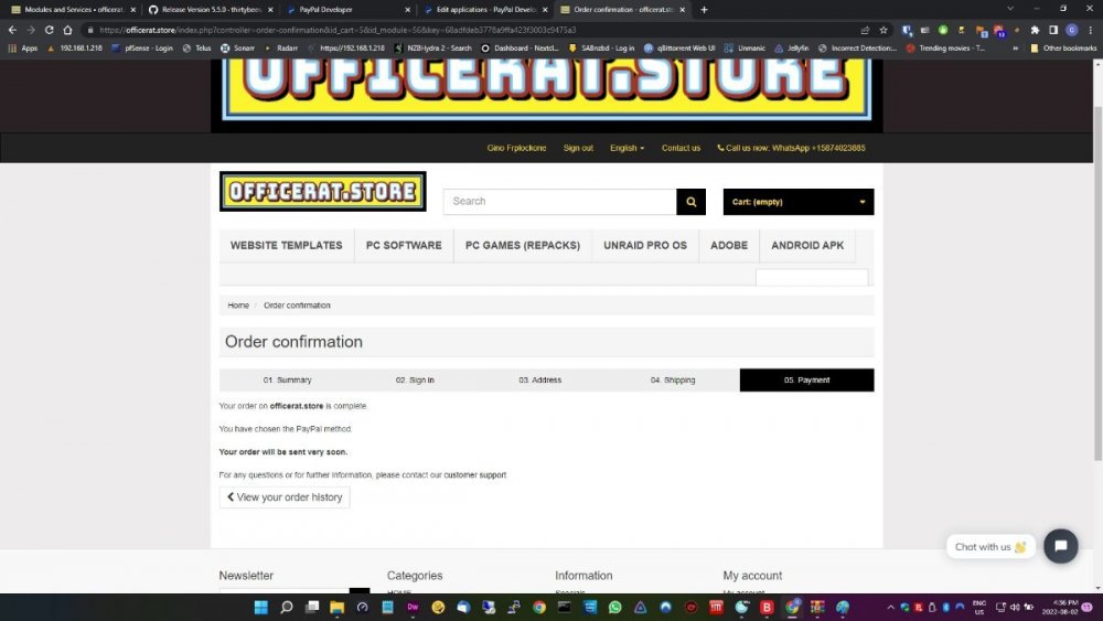 Issue resolved after several hours of investigation. It turned out to be a bad stripe module, in fact if the stripe module is installed neither the paypal nor the stripe will work. I removed completely the stripe and i deleted the paypal as well and installed it from a different source, githubs repository, then I toggled the switch to disable all 3rd party non thirty bees apps on and off, created a brand new api through paypal and will use paypal for regular credit card purchases as well as paypal purchases. I discovered that there was two incorrect settings selected in paypal as well that were preventing the order from completing. I enabled website payment standard and this time I did not enable express checkout or website payments plus because they are not supported and give an error code which I overlooked before and did not notice but it was there. Now everything is peachy and order processes and product is delivered digital goods and downloadable and the order says that it completed. I will never install stripe again, how aweful that I lost $200 sales and almost two months past of people trying to place orders and no one bothered to message me and tell me that the checkout wasn't working. It was working at first but I only tested it with a free product and it really needs to be tested at $1 and I did this twice and all is working now. I can finally relax because I won't lose anymore business and money. I never will use stripe again, I'd rather buy the square module and try my luck with that however with it working properly I should just use paypal because it processes regular credit card purchases all the same. I just don't like how people open disputes instantly as soon as something isn't working and don't bother to message me and tell me there is something wrong. I never had a chance to fix it before losing money.