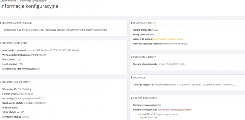 15. Hello, When I click on "configure" button in the Coreupdater module on the list of modules in the BO I get the following: (Thirtybees 1.3) I've contacted my hosting crew and they claim that CURL has no problem with my webpage (TLS 1.3/1.2). There arent' any problems with the certificate. The problem may be with guzzlehttp which uses the old TLS protocol. Could you help me? The other issue is that my shop has been running very slowly since the installation and it hasn't been solved. Thx, Marta