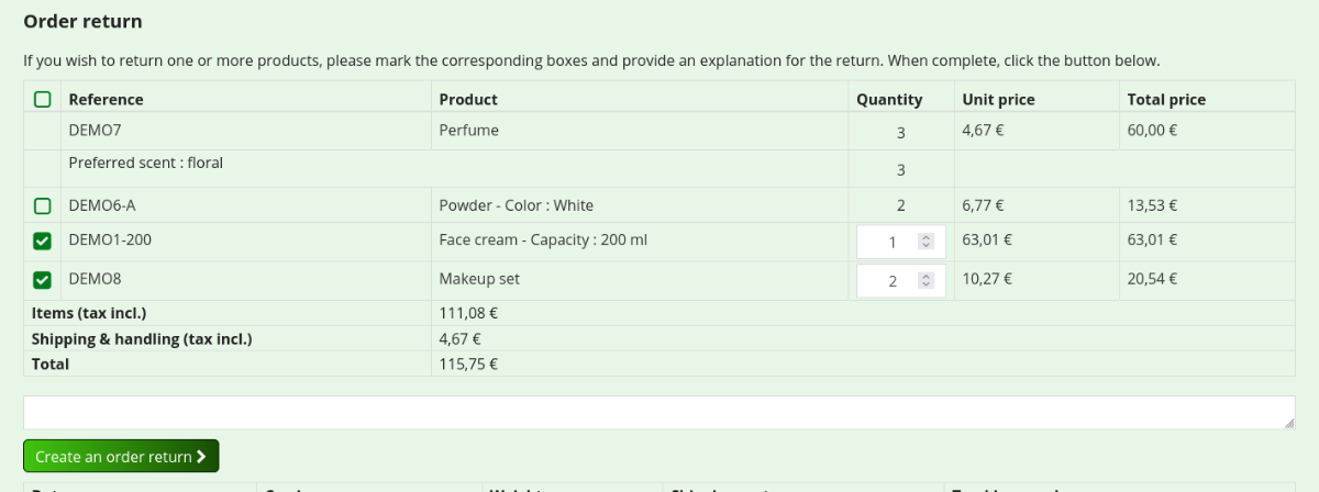 In my module, I implemented this as follows: the "Cancel order" button is always visible in the store's navigation bar; when the customer clicks it, they are taken to their order list and can cancel the order with a single click. In the module’s configuration, you can exclude order cancellations for virtual products and customer personalized products; by law, such products are non-returnable. When the customer clicks the "Cancel order" button, the order status is automatically changed to "Order canceled". Many electronic payment gateways offer automatic refunds when the status is changed to the one specified in their configuration—in this case, we achieve 100% automation of store operations that require no action from store staff.