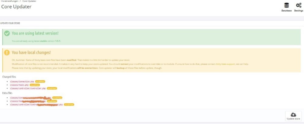 Dear friends, I have a topic that I need to tackle today. I had thirtybees installed from the start and was quickly sure that it would one day replace our old shop system. After all, I urgently need something new. So, over the years, many tests have been carried out and adjustments have been made. And of course all shop updates up to 1.5.1. Please look at the picture, I have this message in coreupdater. I am aware of this and it is correct. I made these changes over the years of testing. These are adjustments that I know about and that I need. It is nothing major. Why did I change it in the core? Well, it was a test system and I can do that. I can't put it in a module. Can I implement it myself as an override - well, maybe, but since it was important, quick stuff, it was the easiest way to do it this way. the test system has now been transformed into a productive, live shop. it was created out of necessity and I wasn't ready yet. the old shop system was terminated by the old hoster due to internal disputes about the PHP version and its data structure. thanks old hoster 🙂 so what can I do? up until now the shop updates have worked just like that. I wouldn't mind entering these changes manually again if there is an update to a new shop version that cannot handle these changes. up until now this has apparently never been a problem. what is the thirtybees support like about this? can they package it as an override? is this work for paid hours?