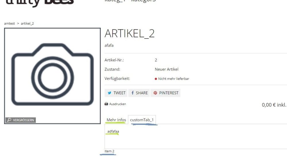 Hello, I decided to test a module that can add tabs. Unfortunately, I now have a problem with the FO display. The content of the product description and the customs tab is displayed, but both times even when I switch tabs. And the content of CustomTab is outside the area. Here are 2 photos that show it with switched tabs. Is this a problem with thirtybees? I also switched to the community theme as a test and unfortunately it is the same there. In which files i can check for that? -