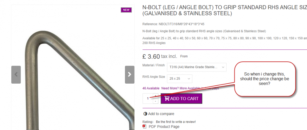 Not sure why I have not spotted this before really. Perhaps because I am now playing with combinations. We have various tiers of quantity discounts, 10% off for 50, 20% off for 100 etc. On the product page, when I change combinations the price also changes - great, but when I type or select a quantity the price is not updated. It is fine once added to the cart (BTW when I tried to upload an animated gif but it would not let me, gave a -200 error, but worked anyway) So my question is, on the product page should I expect the price to be updated to apply quantity discounts? If the answer is yes, then i need to work out why it isnt (ideas? If the answer is no, then is there a module / code hack I can use?