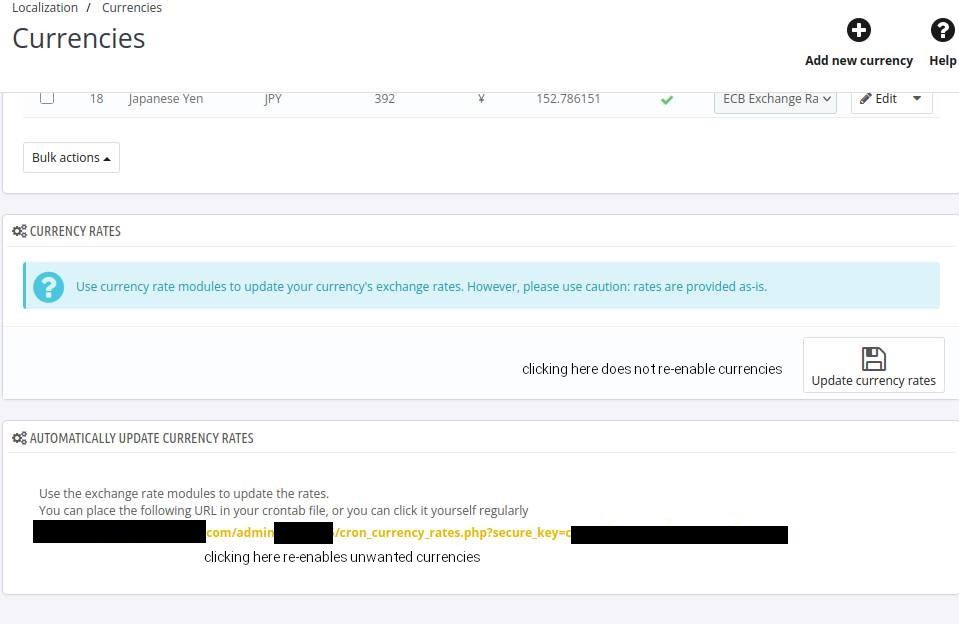 Any ideas on how to stop the cron job from re-enabling these unwanted currencies?